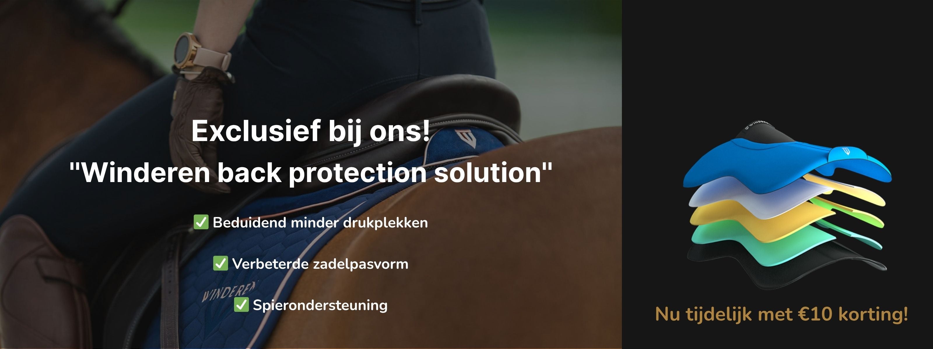 Ontdek hoe de Winderen zadelonderlegger het verschil maakt in comfort, drukverdeling en stabiliteit. Perfect voor iedere discipline en ontworpen voor topprestaties. Geef jouw paard de ondersteuning die het verdient – elke rit opnieuw.